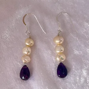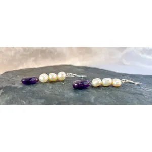 Handmade Amethyst and Pearl Sterling Silver Earrings
