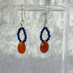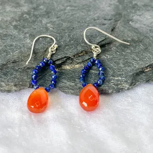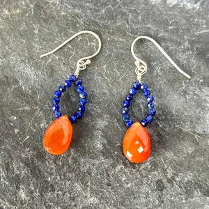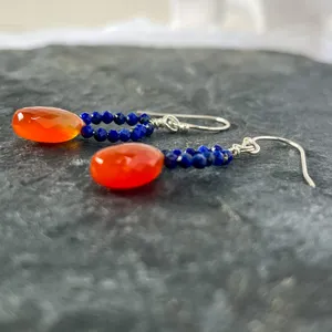 Handmade Lapis and Carnelian Sterling Silver Drop Earrings
