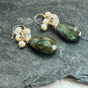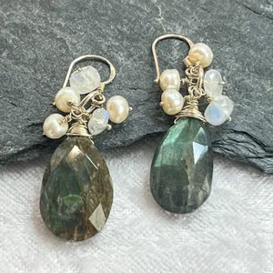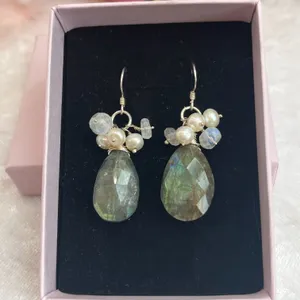Handmade Labradorite Cluster Earrings