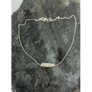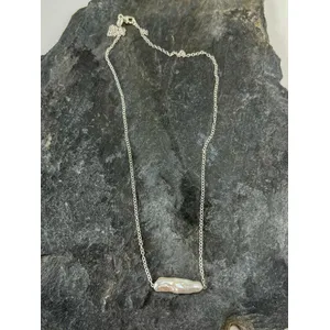 Handcrafted Sterling Silver Biwa Stick Pearl Necklace