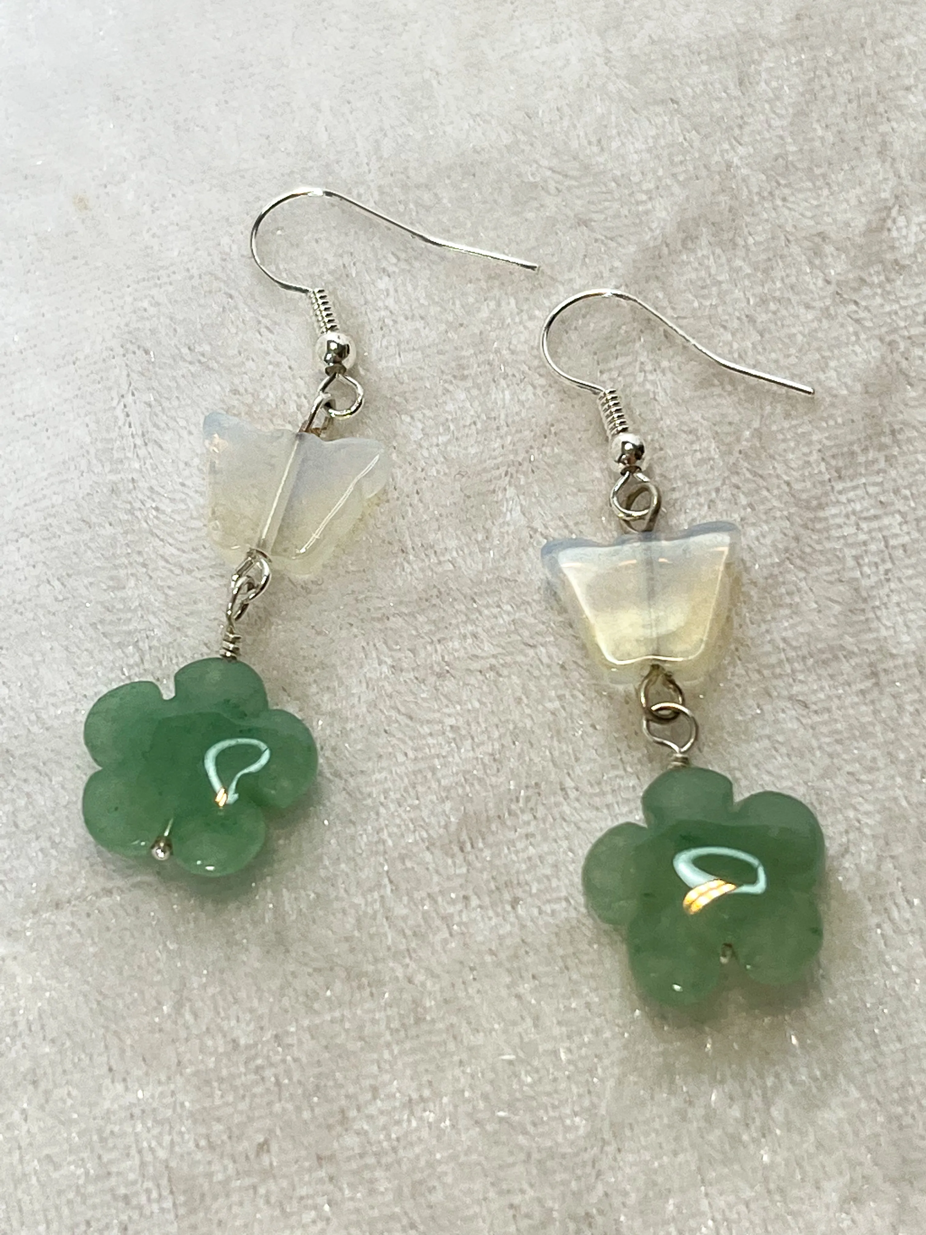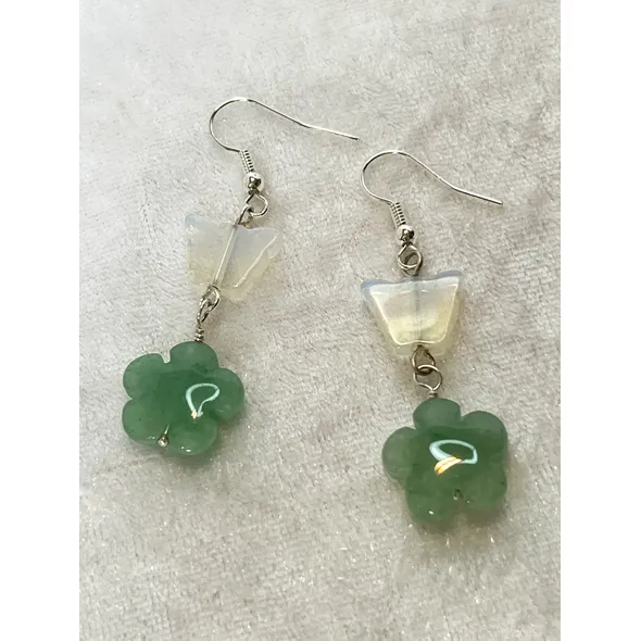 These cute, fun earrings feature Opalite butterflies and aventurine flowers, perfect to herald the Spring.