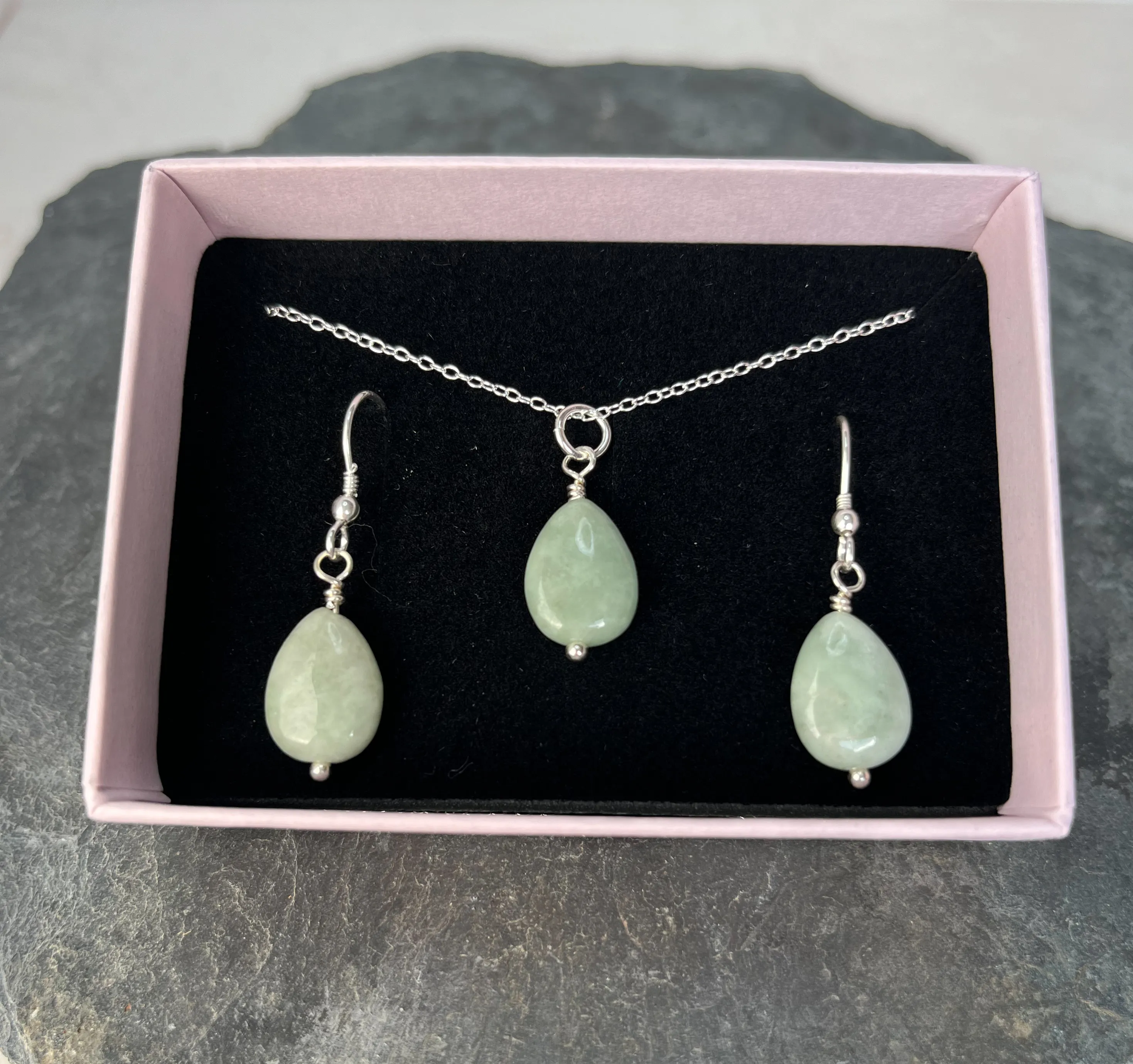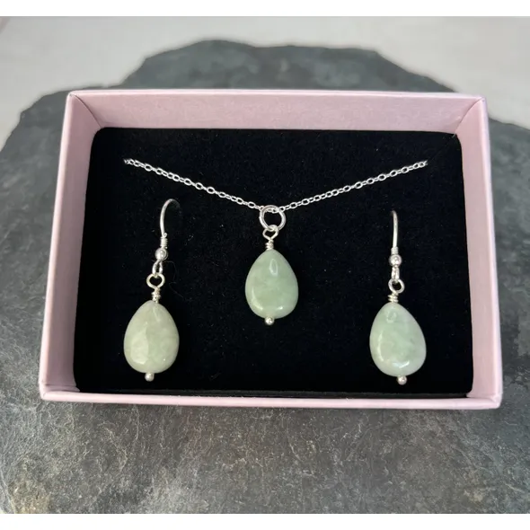 Treat your loved one to this natural A grade jade jewellery set in sterling silver.