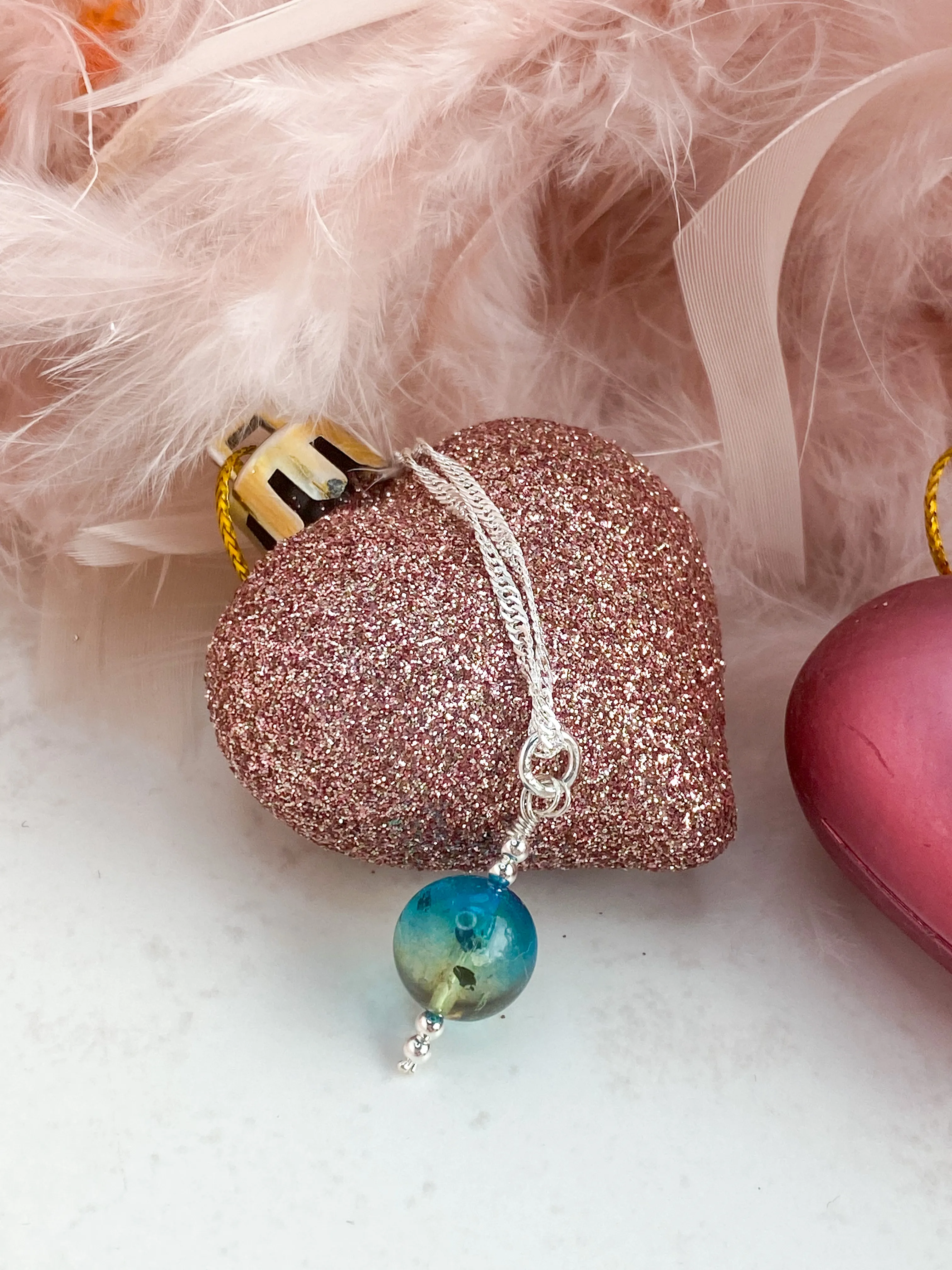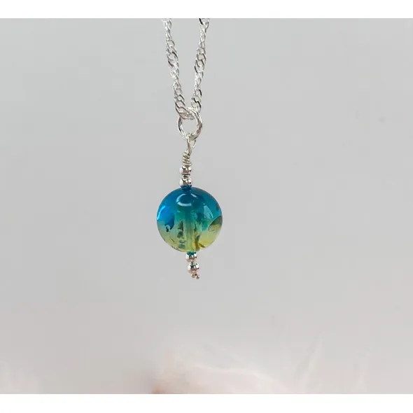This is a rare beauty. This is a sterling silver pendant with a blue ombré Baltic amber bead.